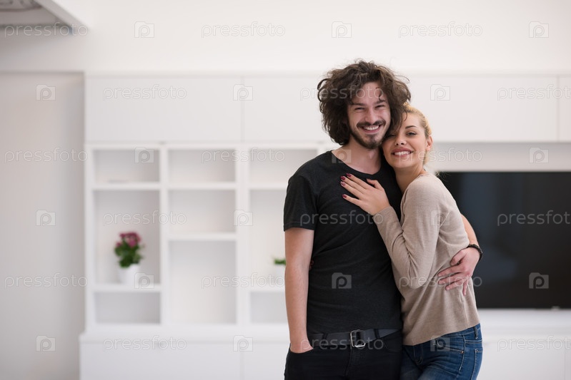 Пара обнимается в своем новом доме