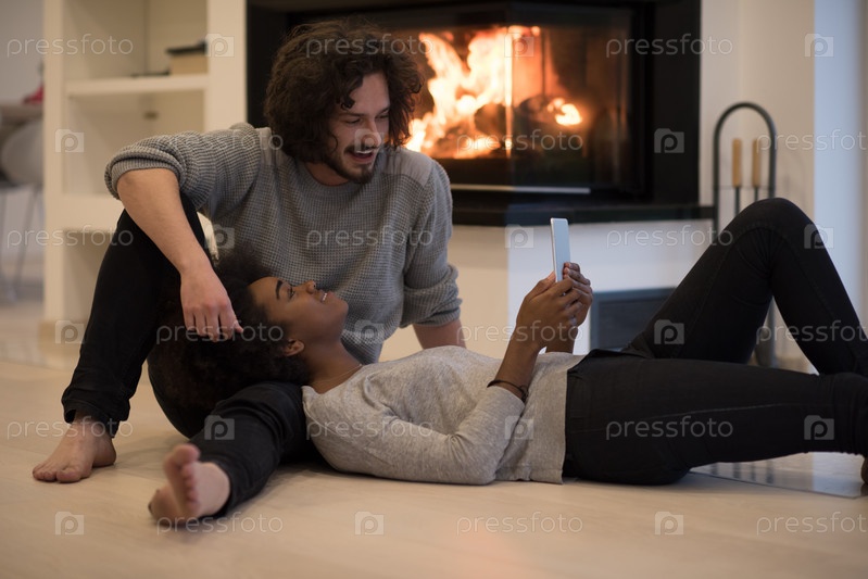 Молодая пара у камина