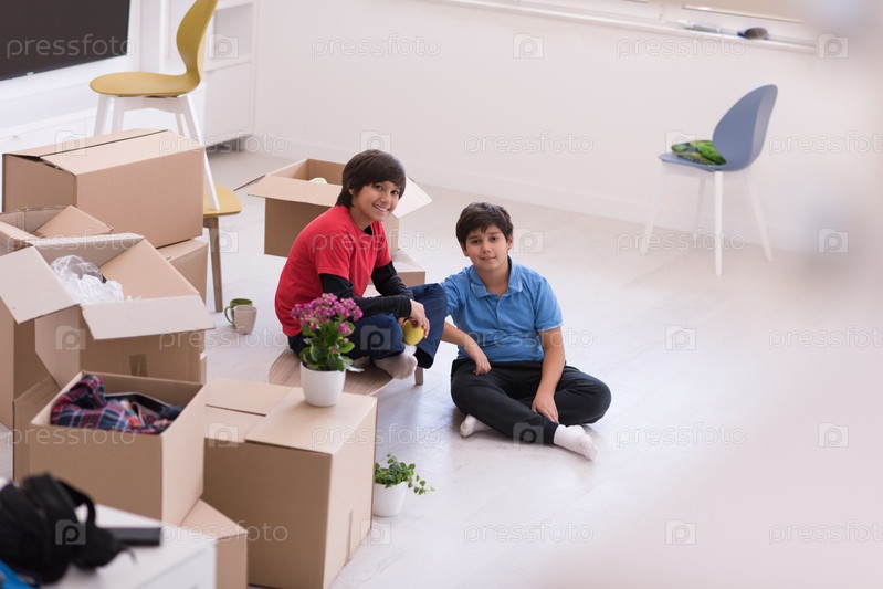 Мальчики с картонными коробками