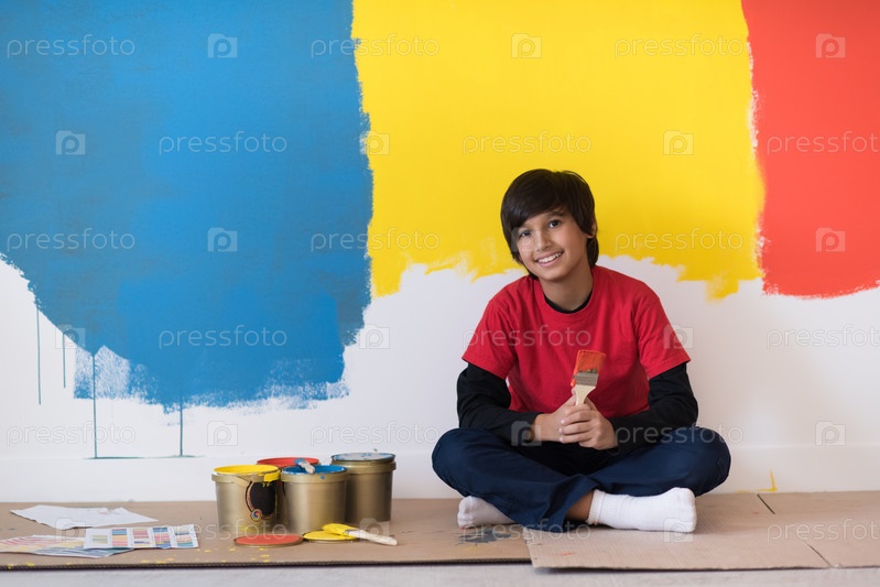 Мальчик красит стену