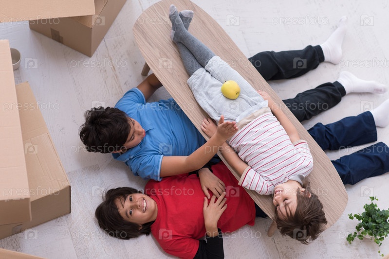 Мальчики с картонными коробками