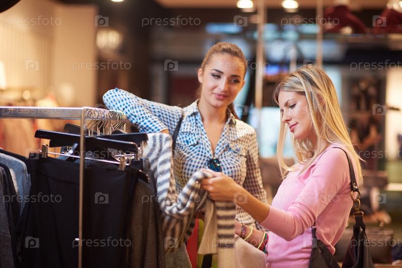 Счастливые молодые девушки в торговом центре