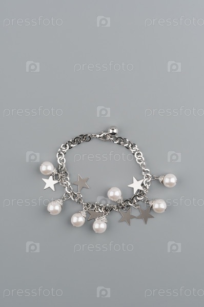 Жемчужный браслет на сером фоне