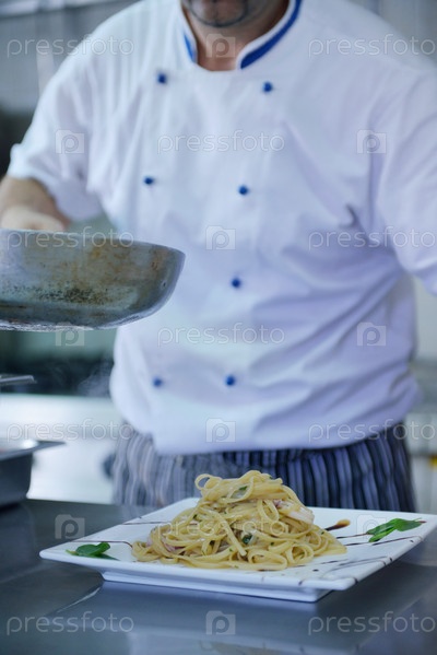 Шеф-повар готовит еду