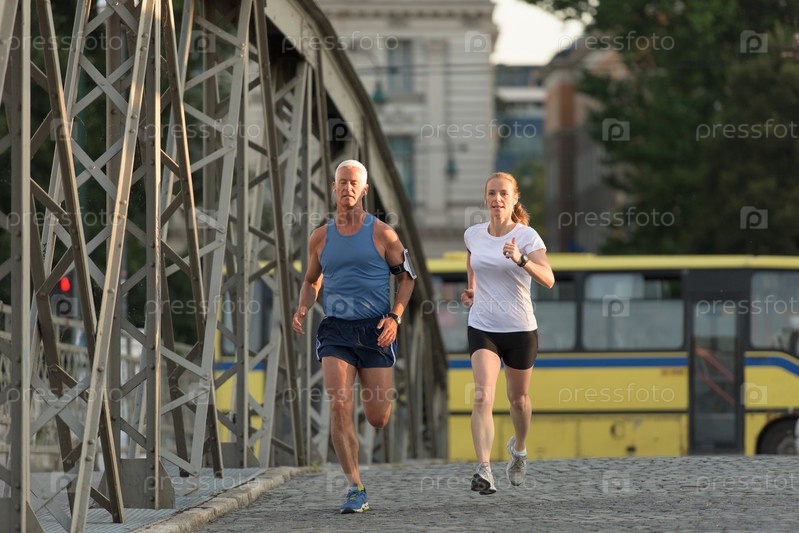 Пара бегает в городе