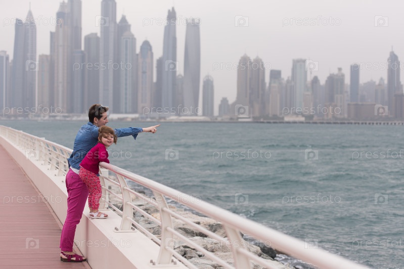 Мать и милая девочка на набережной