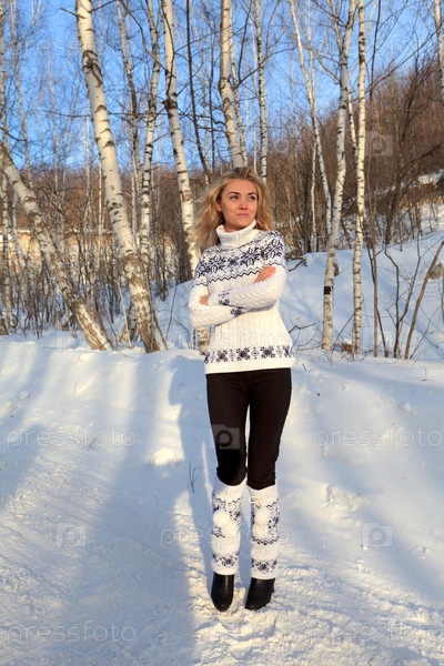 Красивая молодая женщина в зимнем лесу