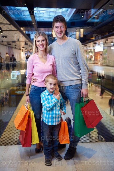 Молодая семья с сумками для покупок