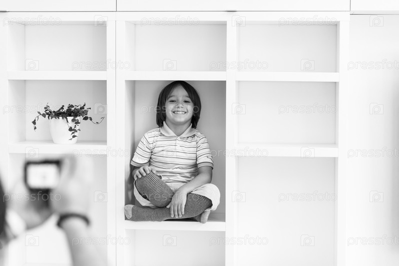 Мальчик сидит на полке