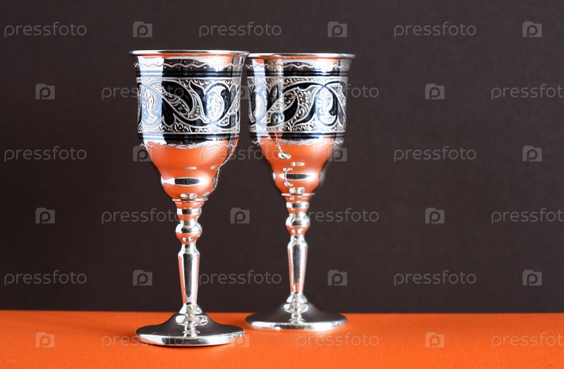 Пара серебряных бокалов на черном фоне