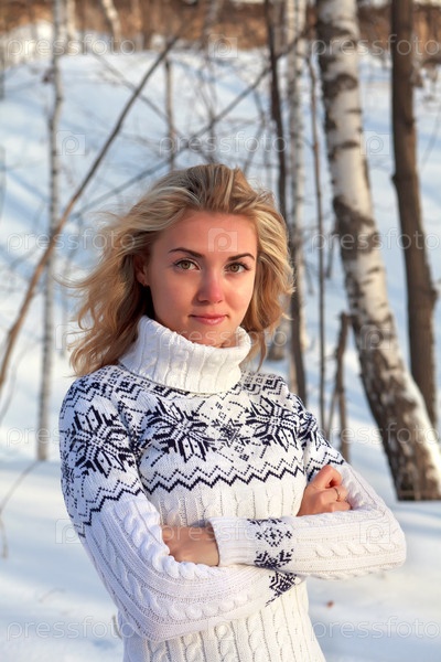 Красивая молодая женщина в зимней одежде в лесу