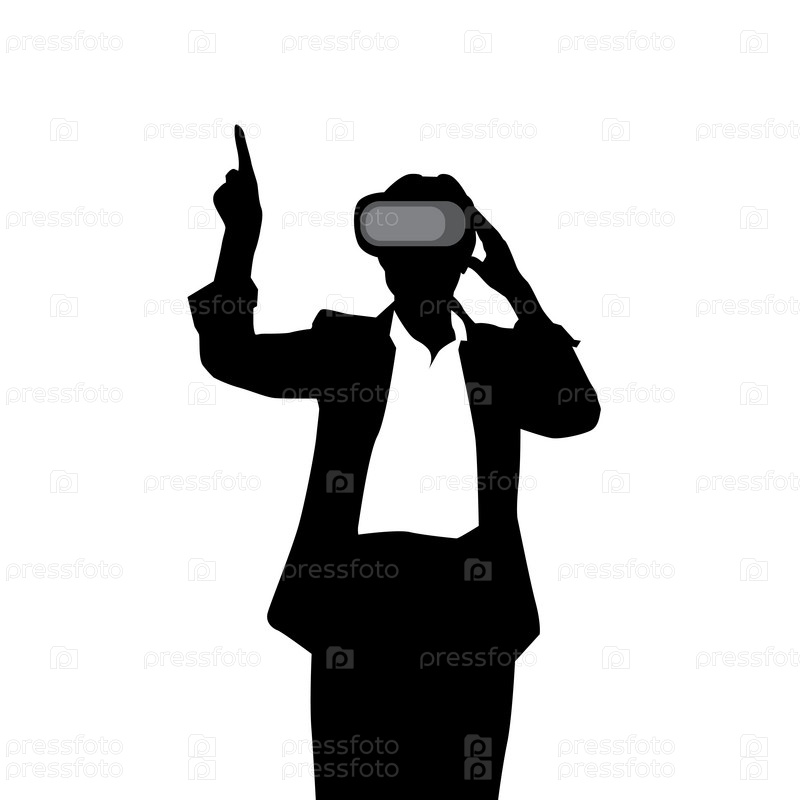 Силуэт деловой женщины в очках виртуальной реальности