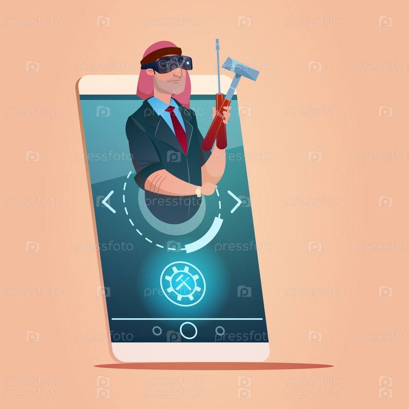Арабский бизнесмен держит инструменты