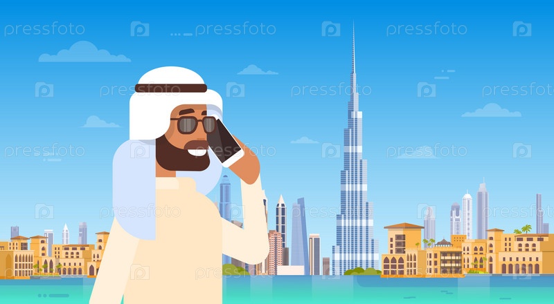 Арабский человек разговаривает по сотовому телефону
