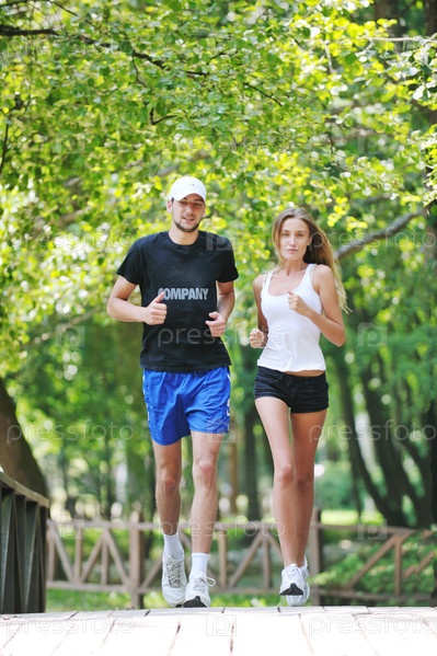 Счастливая молодая пара во время пробежки в парке