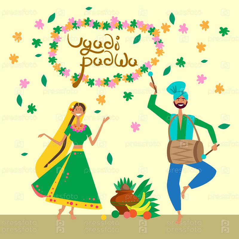 Пара празднует Счастливые Угади и Гуди Падва