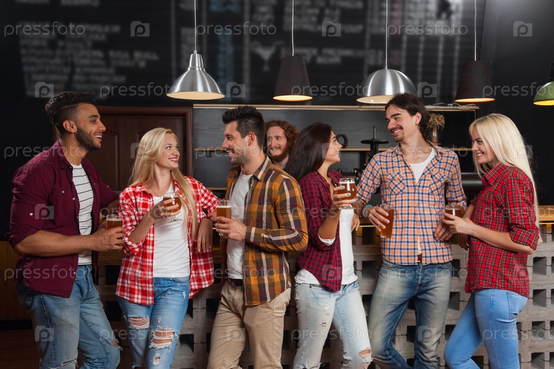 Группа молодых людей в баре