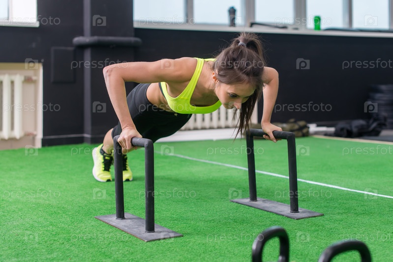 Молодая женщина отжимается