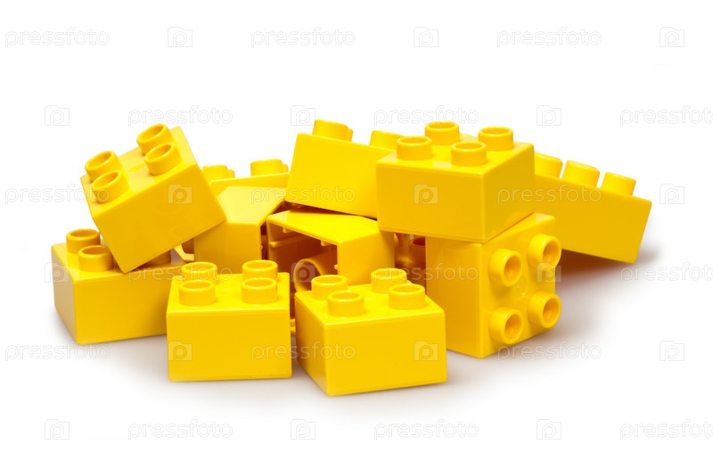 Желтые детали Лего на белом фоне