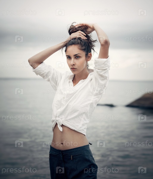 Женщина в белой одежде у моря