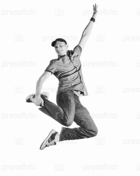 Счастливый молодой человек прыгает