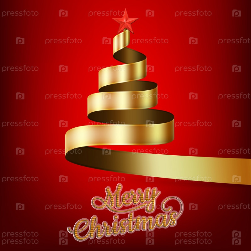 Рождественская елка из золотой ленты и звезды