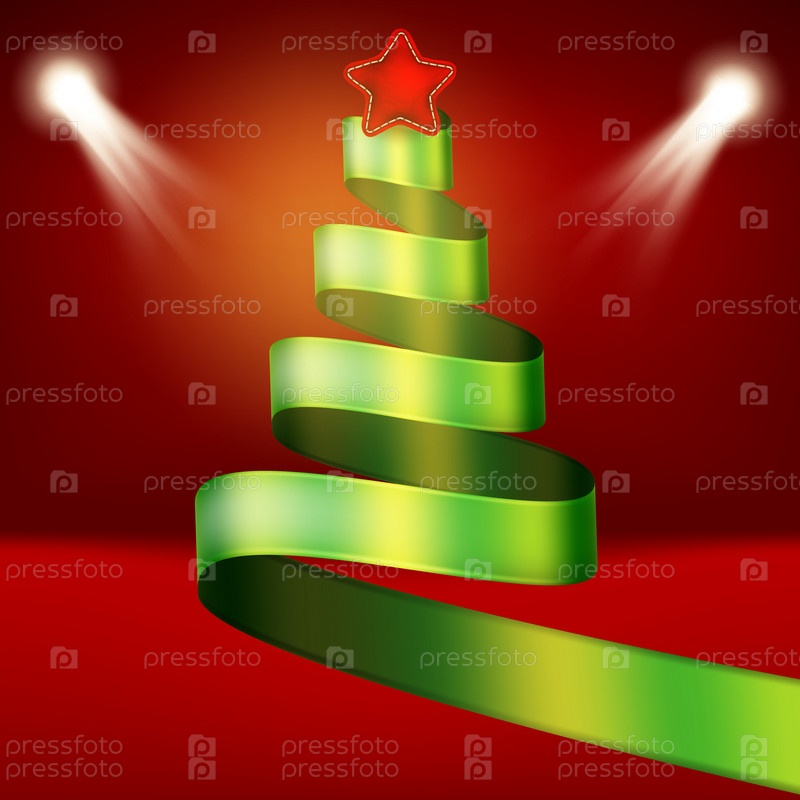 Рождественская елка из зеленой ленты и звезды