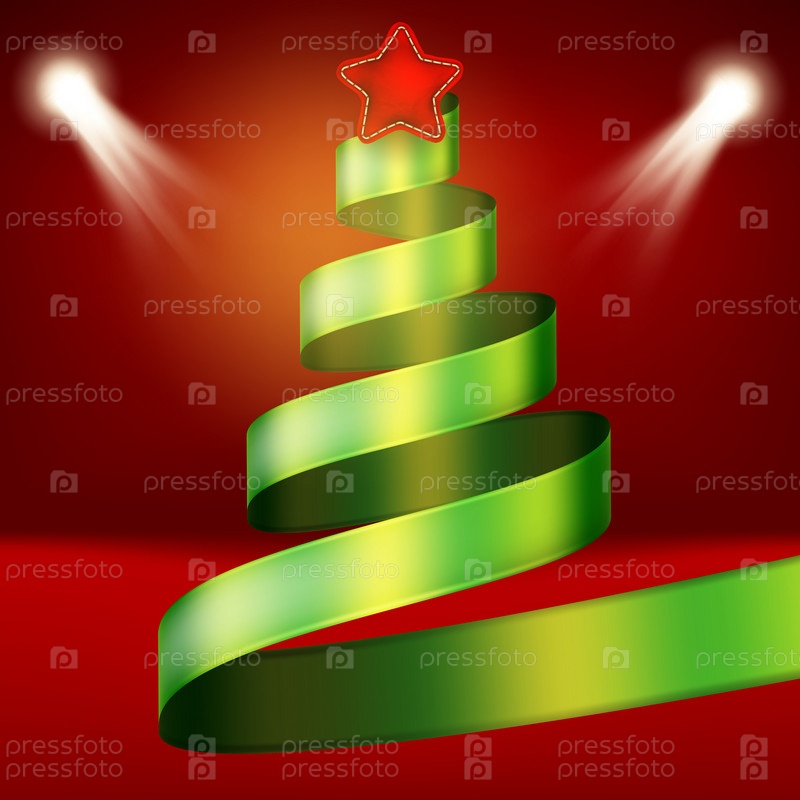 Рождественская елка из зеленой ленты и звезды