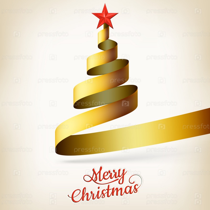 Рождественская елка из золотой ленты и звезды