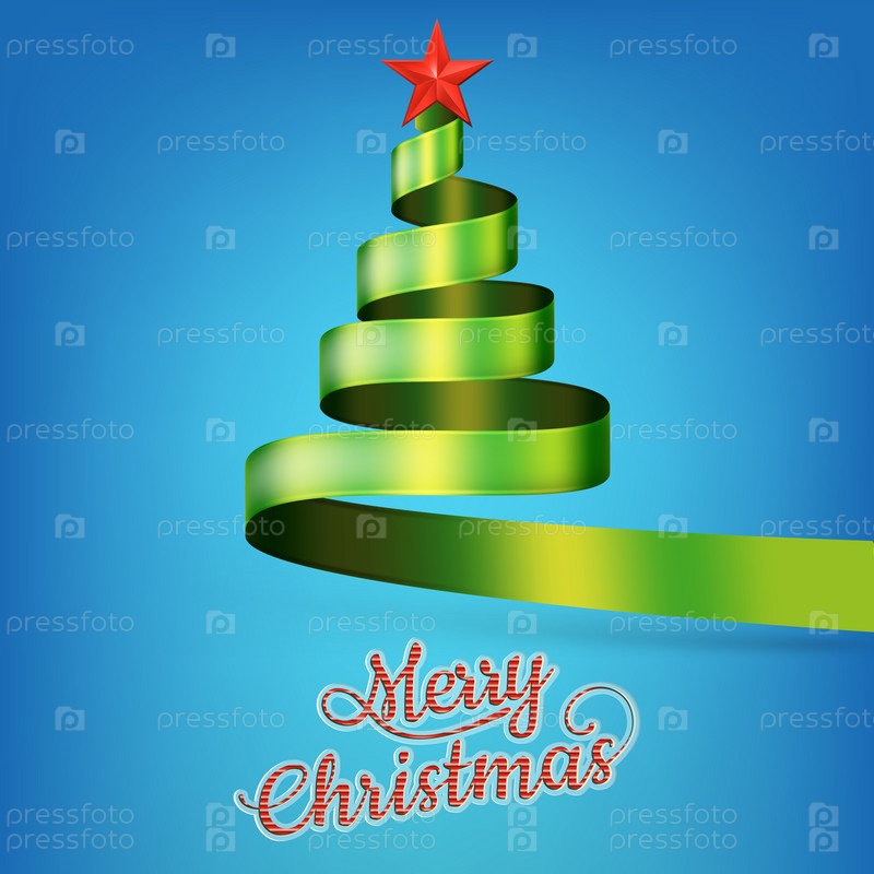 Рождественская елка из зеленой ленты и звезды