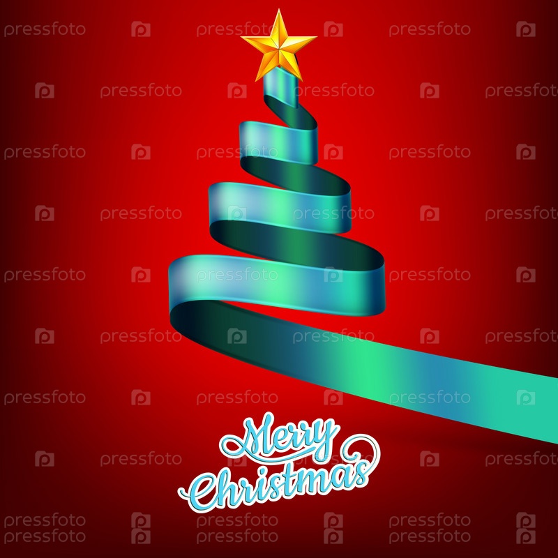 Рождественская елка из голубой ленты и звезды