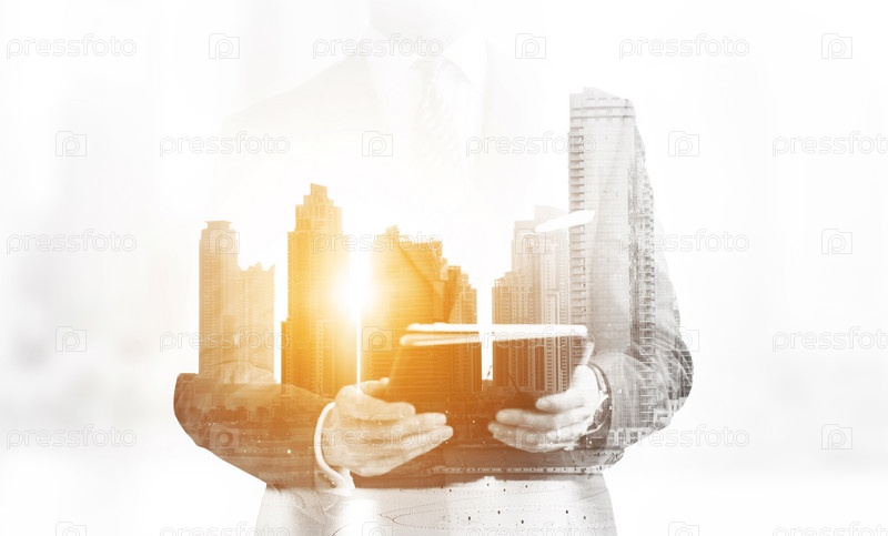 Двойная экспозиция: бизнесмен и город
