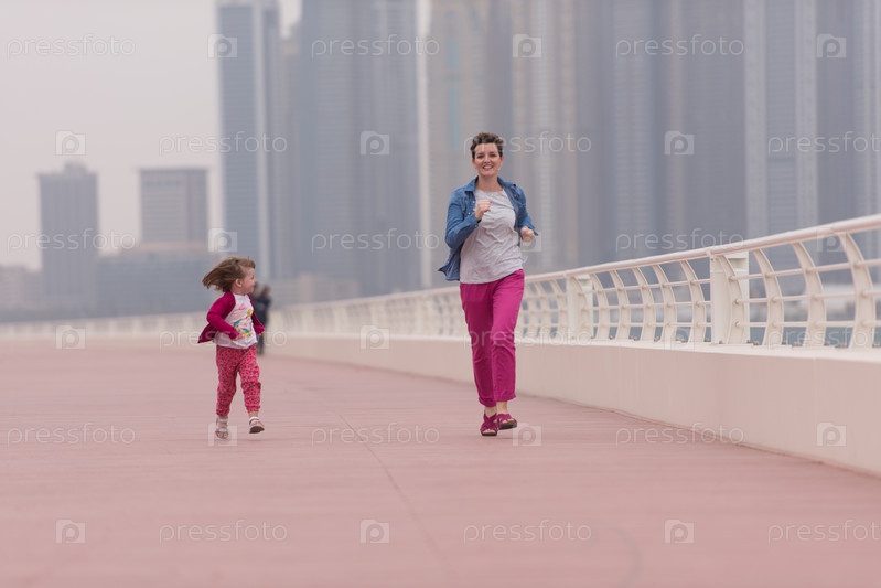 Мать и милая девочка на набережной