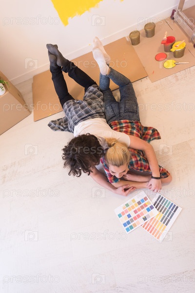 Счастливая молодая пара в новом доме