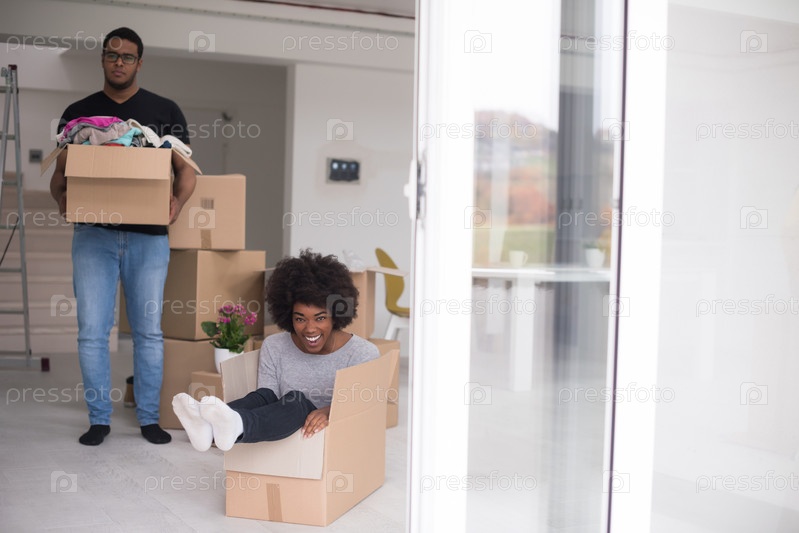 Счастливая молодая пара в новом доме