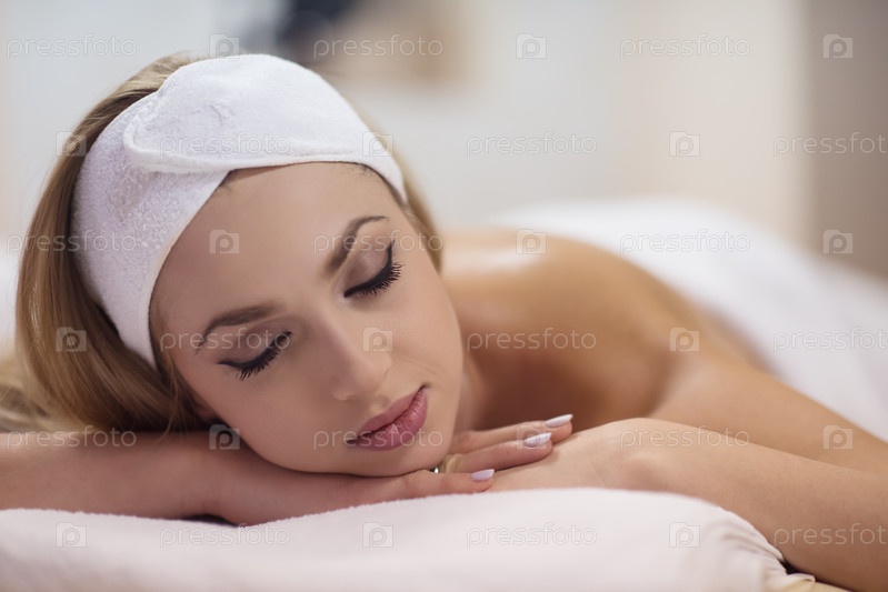 Женщина, лежа на массажном столе