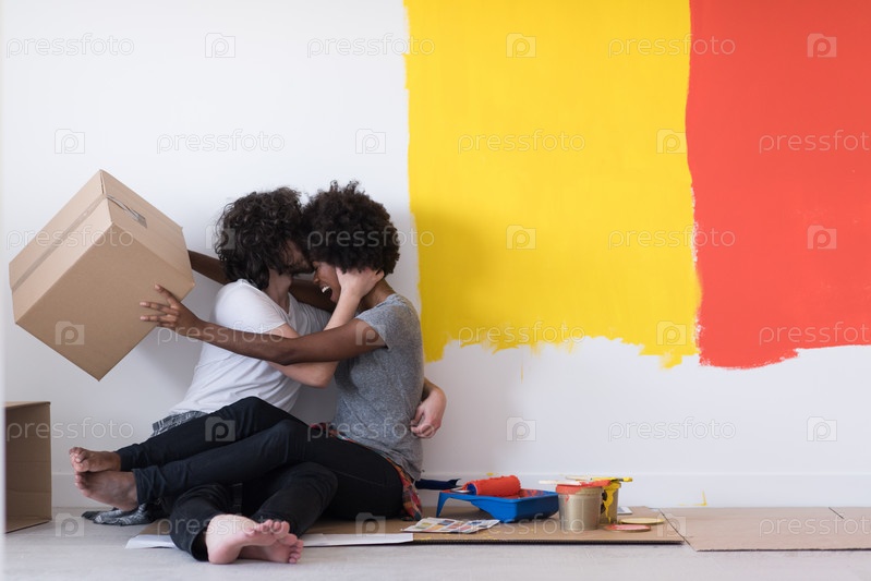 Счастливая молодая пара в новом доме