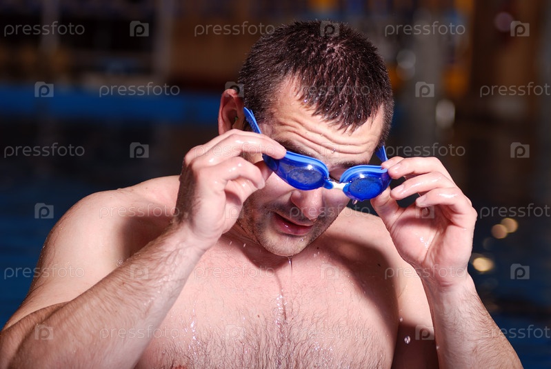 Молодой человек в плавательном бассейне