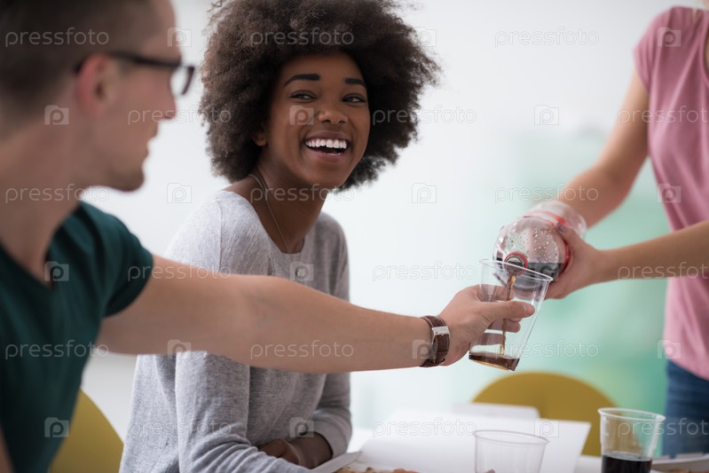 Многонациональная группа молодых людей обедают