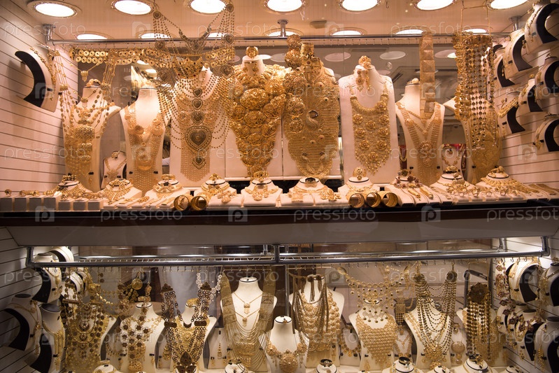 Золотые украшения в витрине