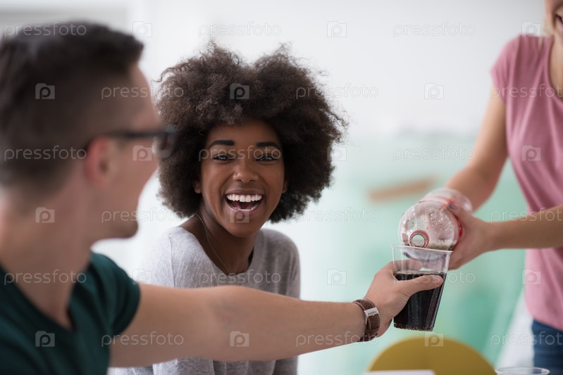 Многонациональная группа молодых людей обедают