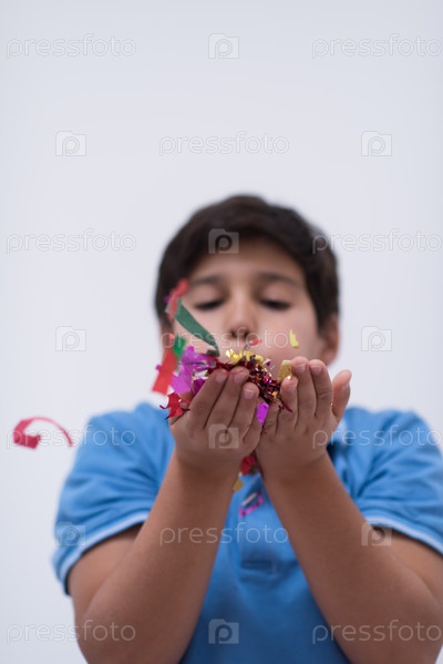 Ребенок дует конфетти