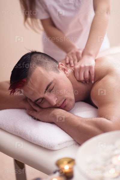 Молодой человек на массаже спины