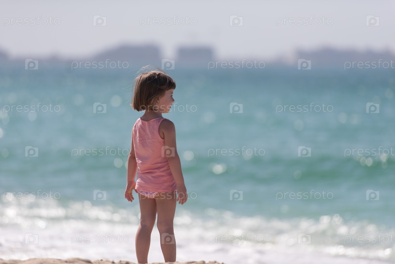 Маленькая симпатичная девушка на пляже