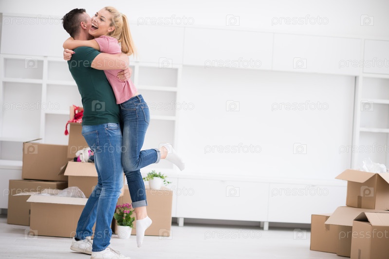 Счастливый молодая пара в новом доме