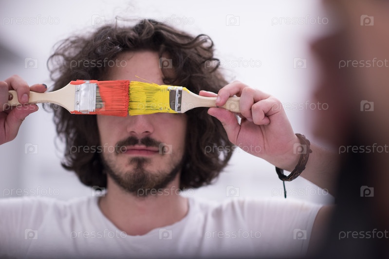 Человек с кисточками в краске