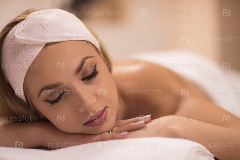 Женщина, лежа на массажном столе