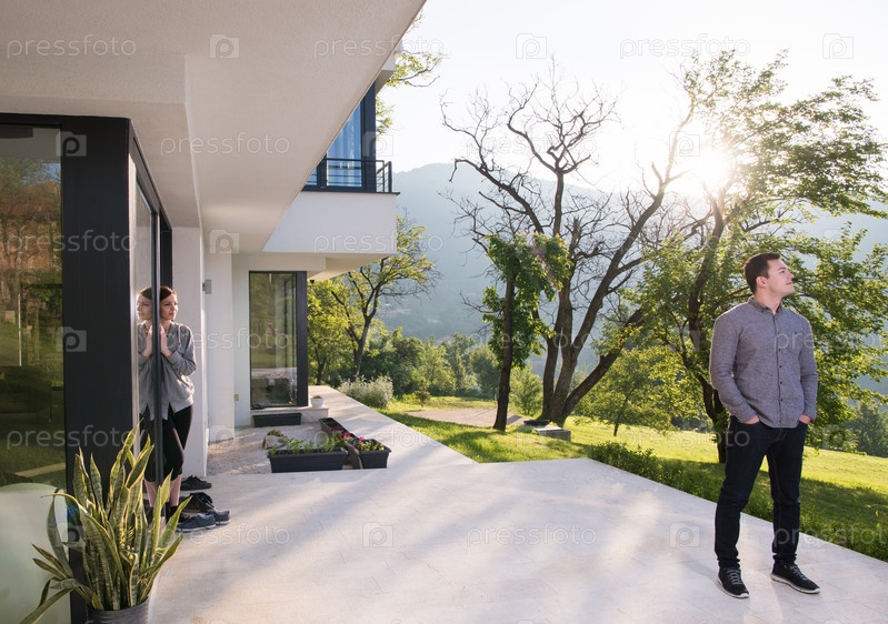 Мужчина перед его роскошной домашней виллой