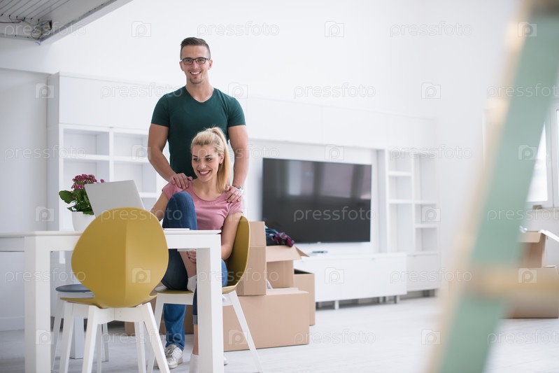 Счастливый молодая пара в новом доме