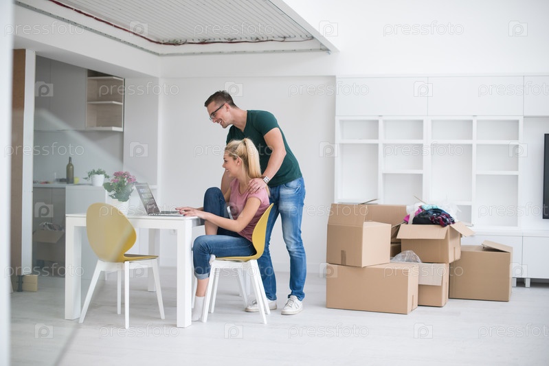 Счастливый молодая пара в новом доме